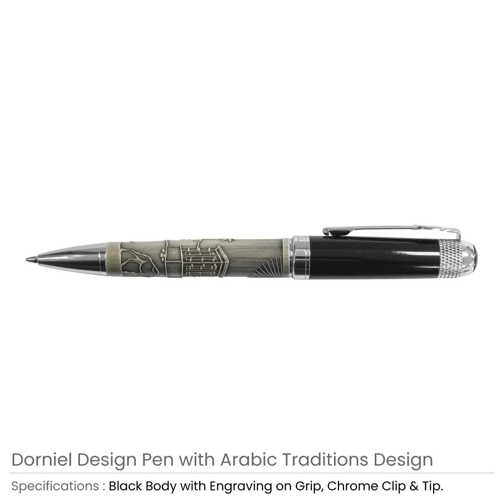 Dorniel metal pens have a distinctive and cutting-edge design. These pens were made from authentic metallic materials. They are hence strong and long-lasting. The barrel and cap of these pens are made of shiny metallic material. As a result, the entire pen has a metallic sheen. The ancient Arabic patterns on the barrel of these pens have made them famous. As a result, you may use these personalized pens to promote your business.